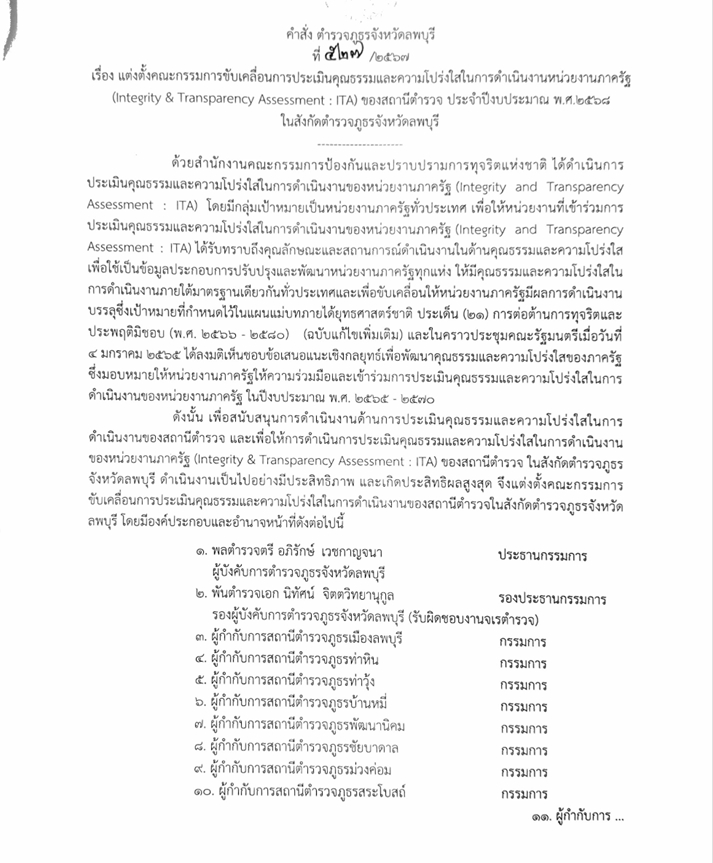 12 ตุลาคม 2565 เวลา 09.30 น.พล.ต.ต.อภิรักษ์ เวชกาญจนา ผบก.ภ.จว.ลพบุรี (ประธาน) พร้อมด้วย รอง ผบก.ภ.จ