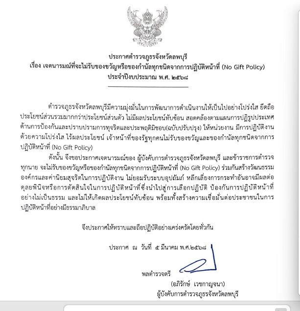ประกาศเจตนารมณ์ของผู้บังคับการตำรวจภูธรจังหวัดลพบุรีและข้าราชการตำรวจในสังกัดทุกนาย จำนวนคนดู 44