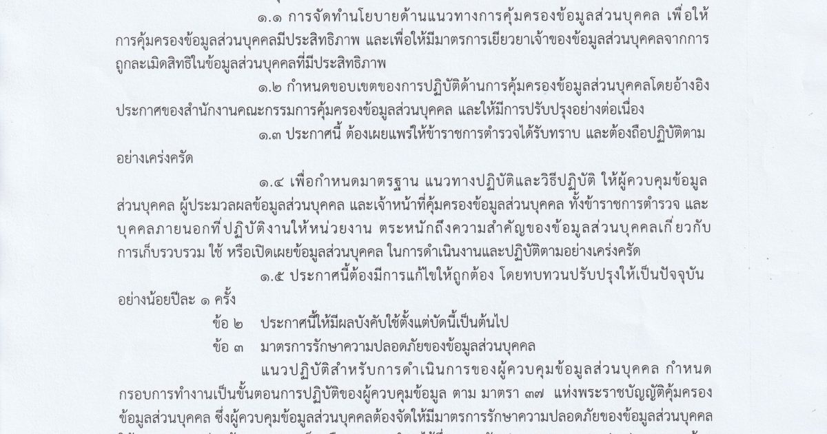 ประกาศตำรวจภูธรจังหวัดลพบุรี เรื่อง นโยบายด้าน แนวทางการคุ้มครองข้อมูลส่วนบุคคล