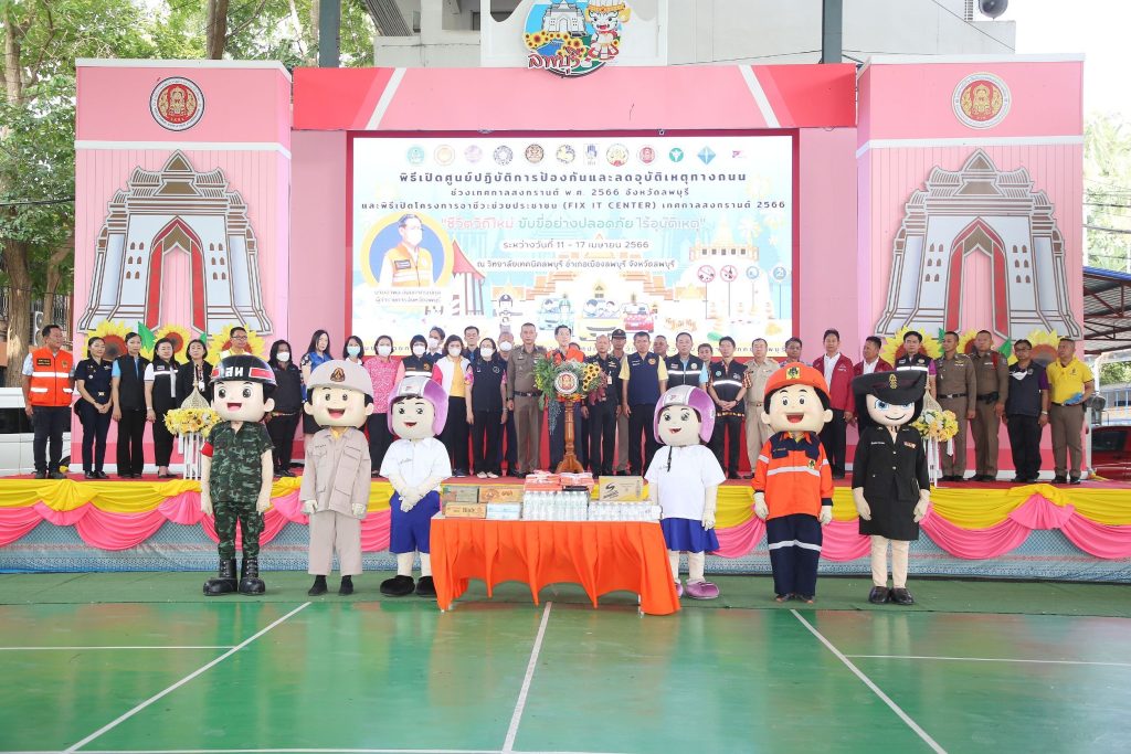 ร่วมพิธีเปิดศูนย์ปฏิบัติการป้องกันและลดอุบัติเหตุทางถนนในช่วงเทศกาลสงกรานต์ ประจำปี พ.ศ. 2566 ของจังหวัดลพบุรี เพื่อเป็นการรณรงค์ สร้างจิตสำนึกด้านความปลอดภัยทางถนน ลดการสูญเสียอันเกิดจากอุบัติเหตุ ตลอดจนการกวดขันวินัยจราจร บังคับใช้กฏหมายอย่างเข้มงวดจริงจัง ในช่วง 7 วันอันตราย ระหว่างวันที่ 11 – 17 เมษายน 2566 และพิธีเปิดโครงการอาชีวะช่วยประชาชน (FIX IT CENTER) ภายใต้คำขวัญ ” ชีวิตวิถีใหม่ ขับขี่อย่างปลอดภัย ไร้อุบัติเหตุ “