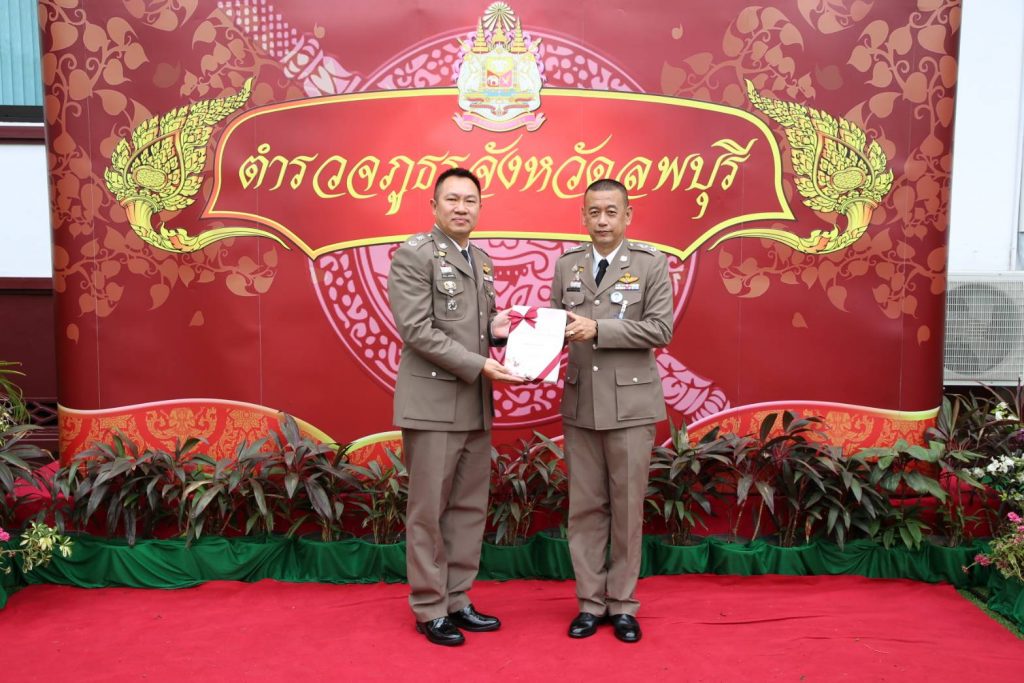 พล.ต.ต.อภิรักษ์ เวชกาญจนา ผบก.ภ.จว.ลพบุรี, พ.ต.อ.อุกฤษ ภู่กลั่น รอง ผบก.ภ.จว.ลพบุรี, พ.ต.อ.บุญชนะพัฒน์ สกุลจารุมรรคา รอง ผบก.ภ.จว.ลพบุรี, พ.ต.อ.ปรารถนา แผ่นผา รอง ผบก.ภ.จว.ลพบุรี, พ.ต.อ.ภูการวิก โชติกเสถียร รอง ผบก.ภ.จว.ลพบุรี, พ.ต.อ.กรณ์เสฎฐ์ วงศ์สีชิน รอง ผบก.ภ.จว.ลพบุรี, พ.ต.อ.วิชัยนาวิน อนันต์ รอง ผบก.ภ.จว.ลพบุรี, พ.ต.อ.ชัชวาลย์ บุญธรรมเจริญ ผกก.ฝกค.ปรก.ผกก.ฝอ.ภ.จว.ลพบุรี, พ.ต.อ.พงศ์สุริยะ สุวรรณพันธ์ ผกก.สส.ภ.จว.ลพบุรี, ผกก.(สอบสวน)ฯ, หน.สภ.ฯ/ตร. ในสังกัด ภ.จว.ลพบุรี